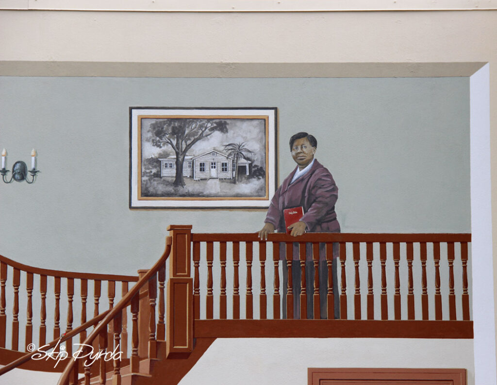 This two‑wall mural in downtown Punta Gorda honors seven women whose lives shaped the city from its earliest years to modern times. Their contributions span education, business, healthcare, government, history, and social causes, each leaving a lasting mark on the community. Alongside their portraits, I included a meaningful element connected to each woman—six reproduced from original artworks and one represented by the newspaper she holds. The mural was painted with a proprietary mineral paint, with assistance from my friend and fellow artist Abby Kent.